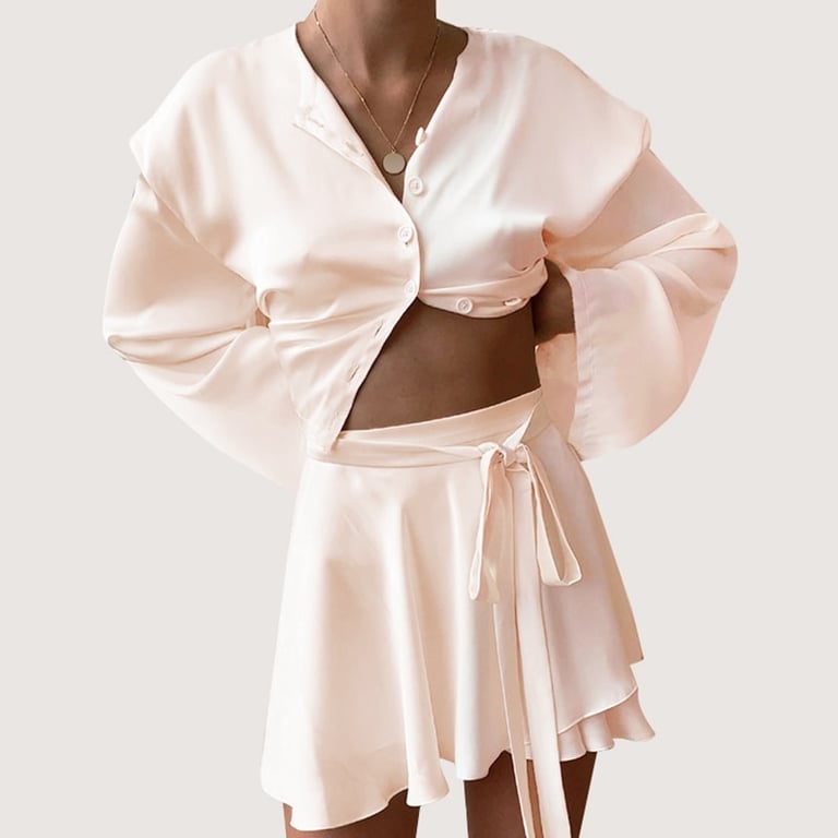 • Tags: top, long sleeve, buttons, skirt, mini skirt
