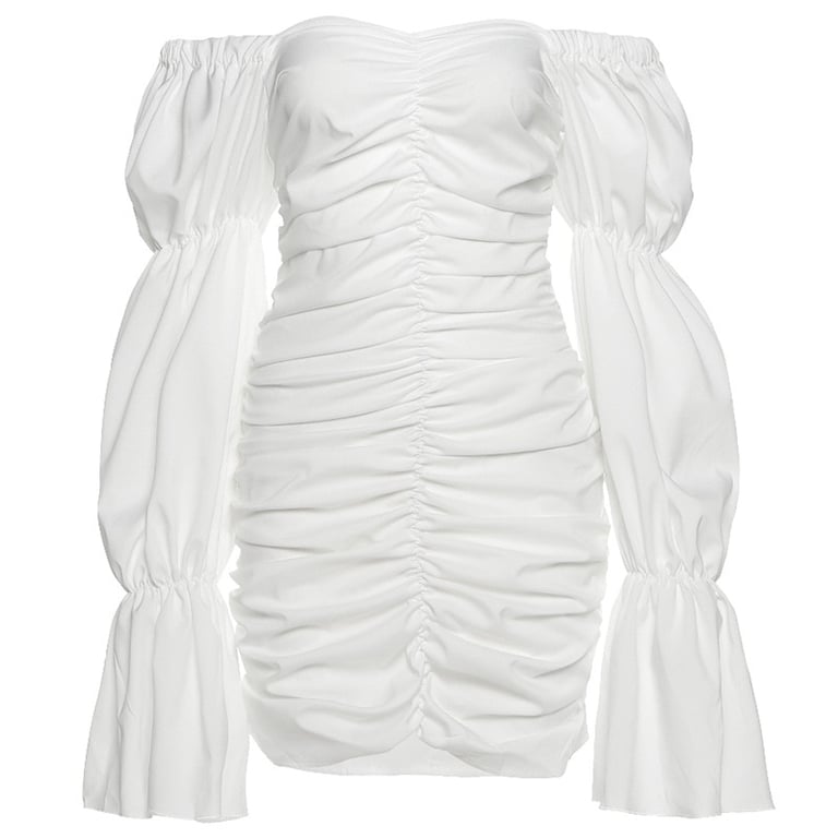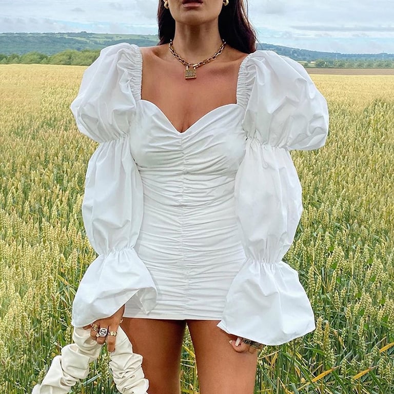 Women's Summer Fitted Dress with Fluffy Sleeves