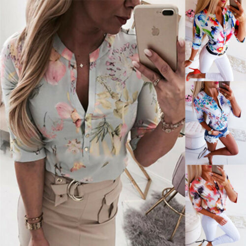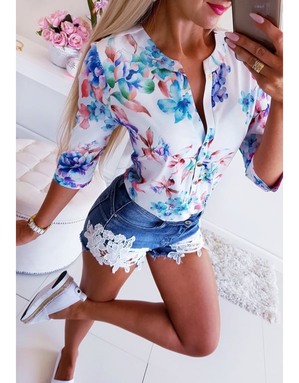 Women's Summer Floral Blouse with 3/4 Sleeves
