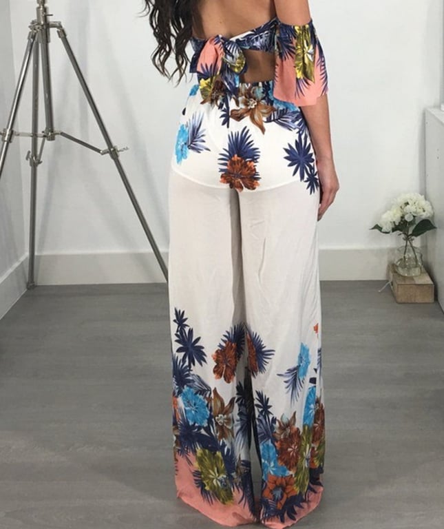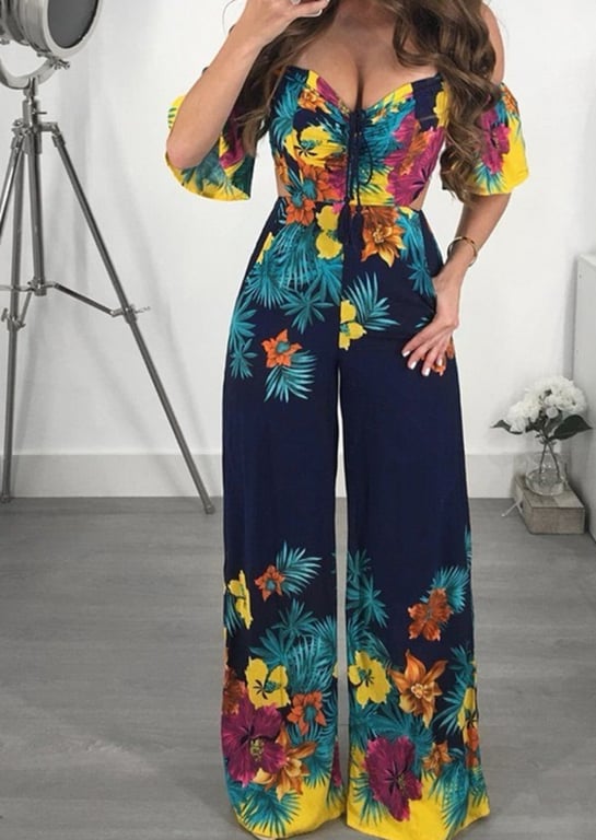 Women's summer jumpsuit with a tie at the back.