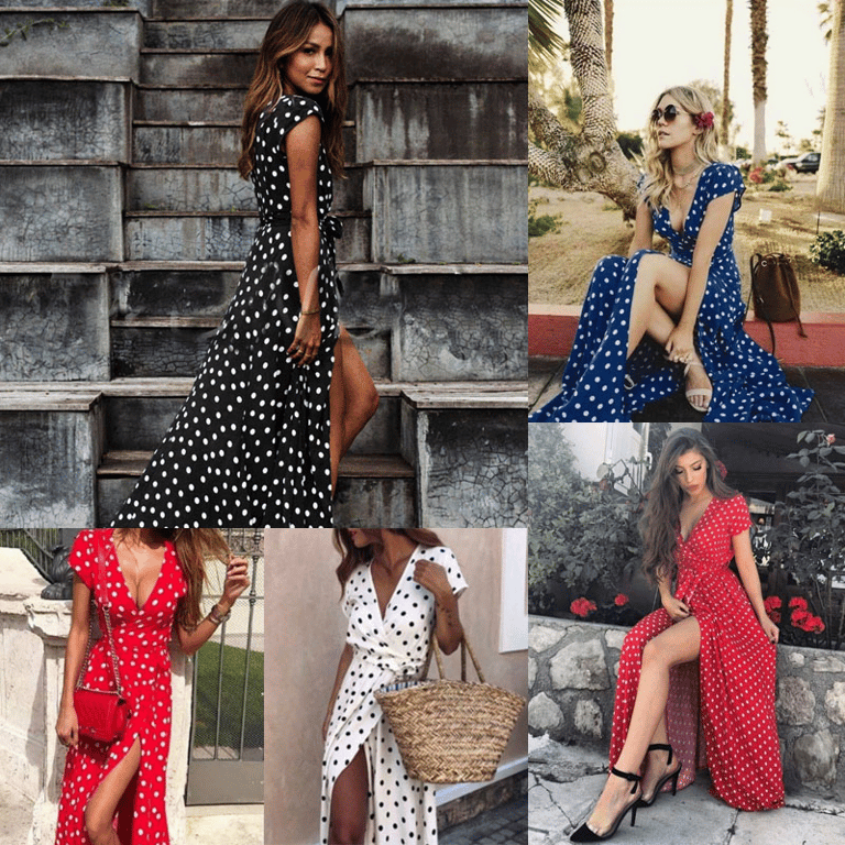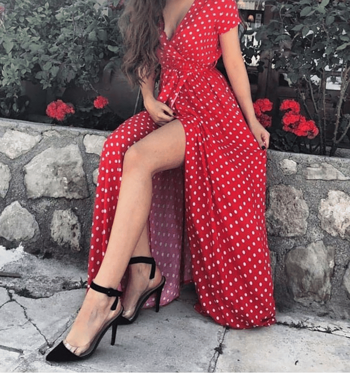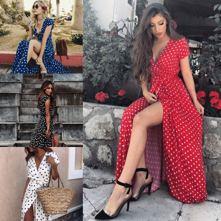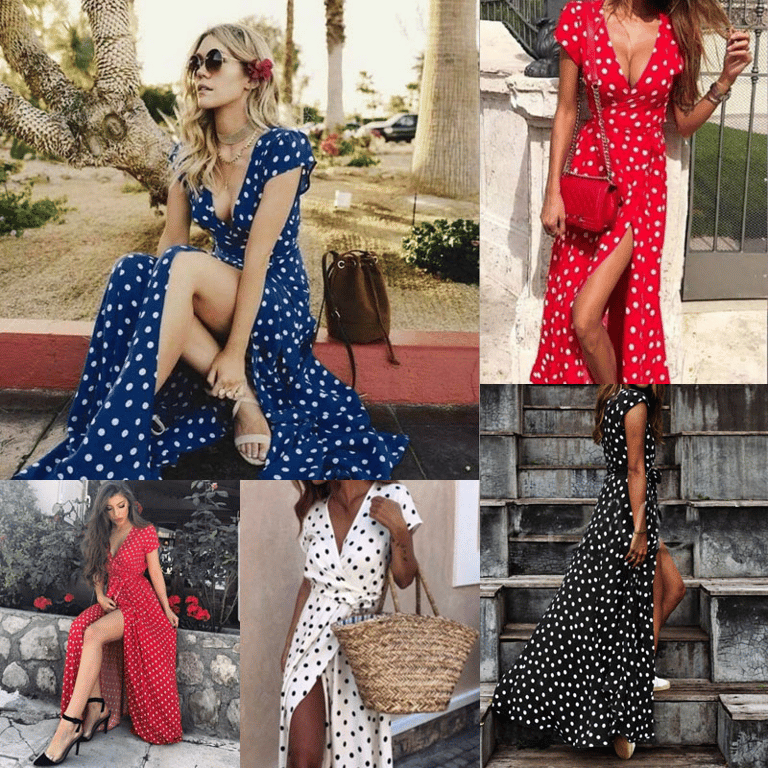 Women's Summer Long Beach Dress with Deep V-Neck and Split