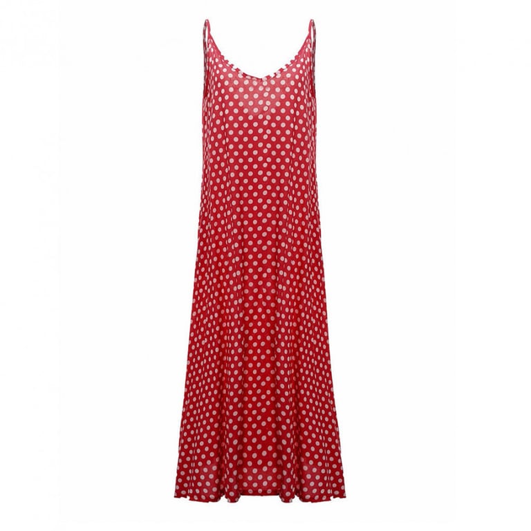 Women's summer maxi dress with polka dots in size 5XL Karolissa – red