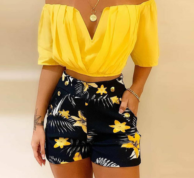 Tags: women's set, women's off-shoulder set, summer set, women's summer set, crop top, shorts, women, women's fashion, women's clothing, fashion, style, women's elegant set