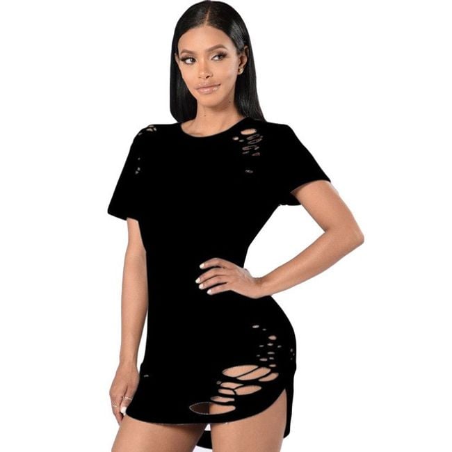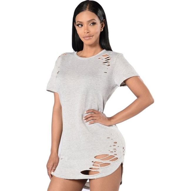 Women's perforated long t-shirt, ideal for spring and summer. This stylish piece is sure to add some flair to your outfit! It will look great when paired with simple leggings or jeans. You can also wear the t-shirt as a short summer dress. Choose from five colours and four sizes. The size chart can be found in the product description.