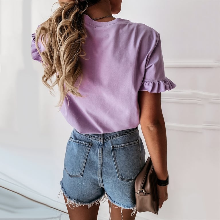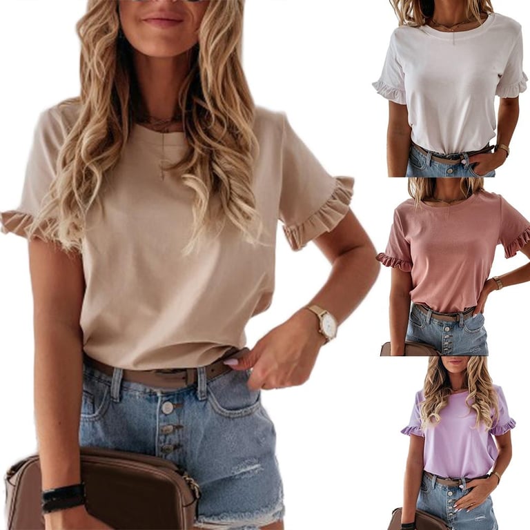 Women's Summer Plain Ruffle T-Shirt