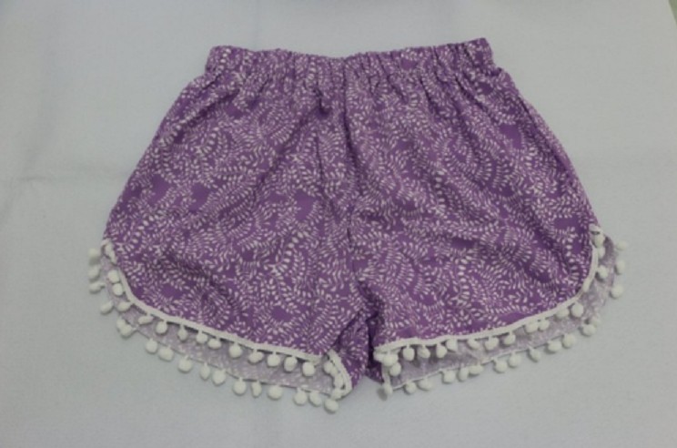 Be stylish with these beautiful purple summer shorts. The shorts feature an interesting pattern and fringes, which are perfect for summer. Now at an amazing price! Material: cotton, polyester Colour: purple