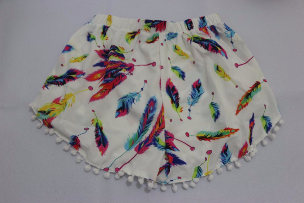 Be ready for summer days with these feather print shorts that shine beautifully in the sun.