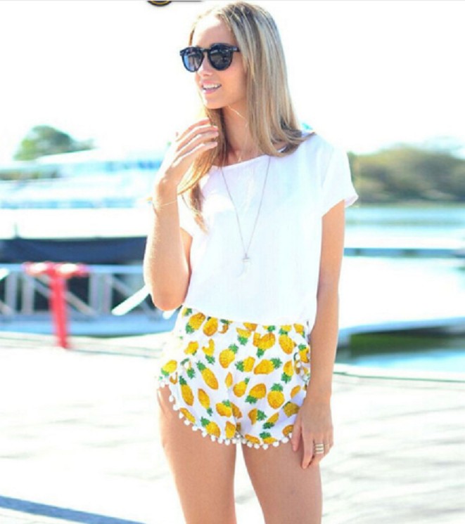 Women's summer shorts with pineapples