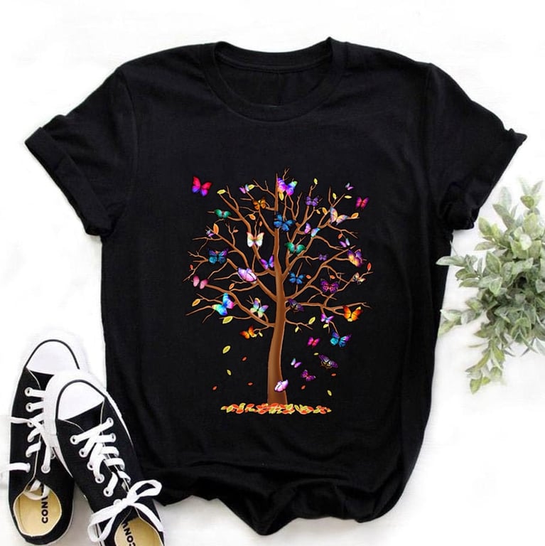 Women's summer t-shirt with Butterfly Tree print.