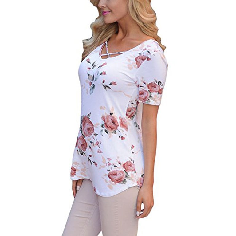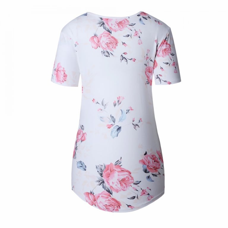 Women's summer t-shirt with floral print including plus size options Adaline – white