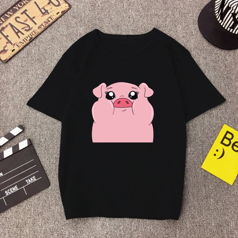 Women's summer t-shirt with short sleeves and Kawaii animal print.