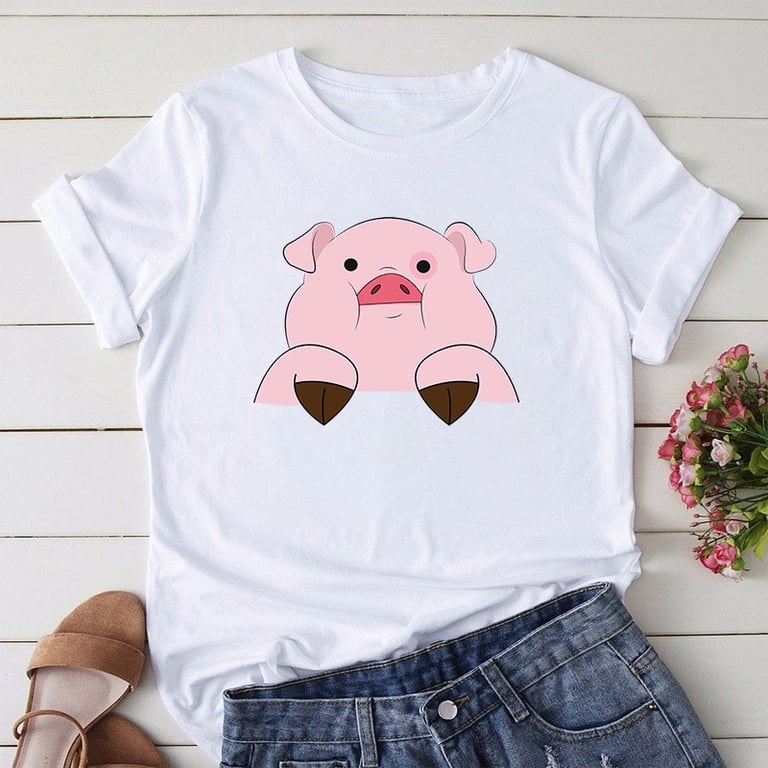 Women's Summer T-Shirt with Short Sleeves and Kawaii Animal Print