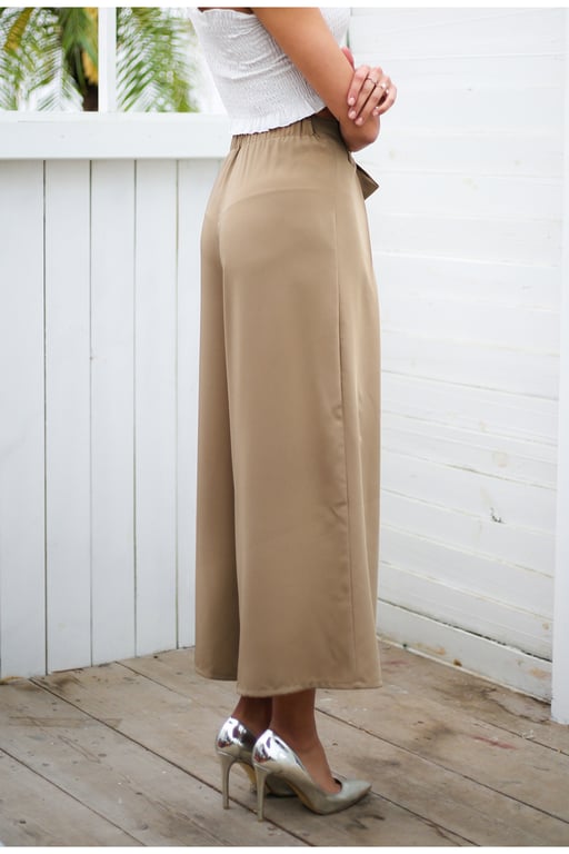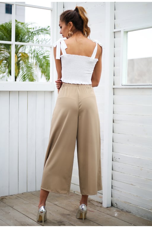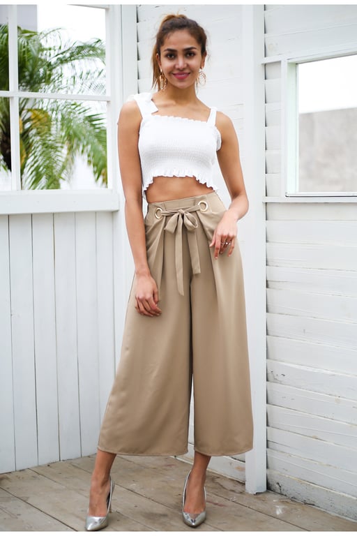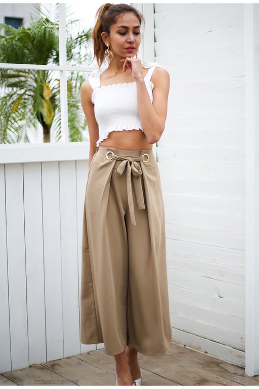 Dress for summer in these loose trousers, adorned with a bow around the waist.
