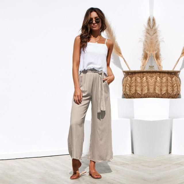 Women's summer trousers with a ribbon