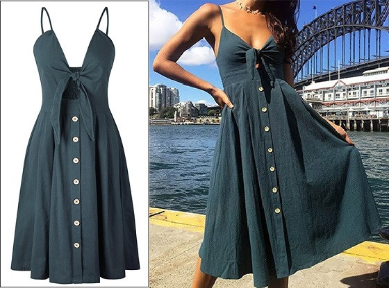 Women's summer vintage dress with buttons – green