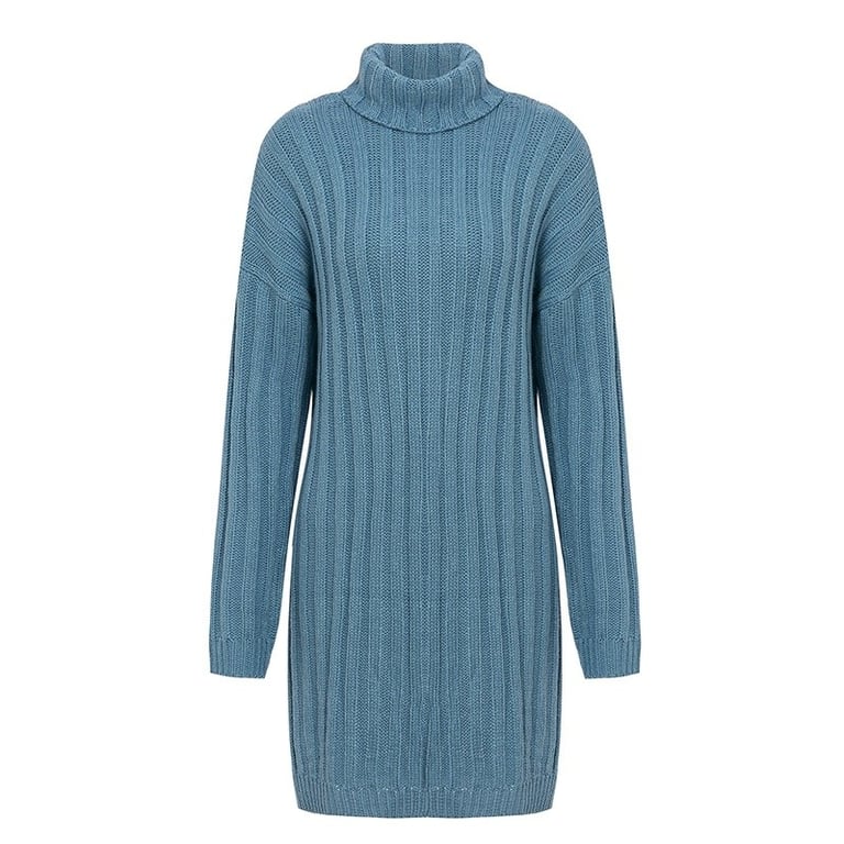 Warmer knitted turtleneck dress with long sleeves.