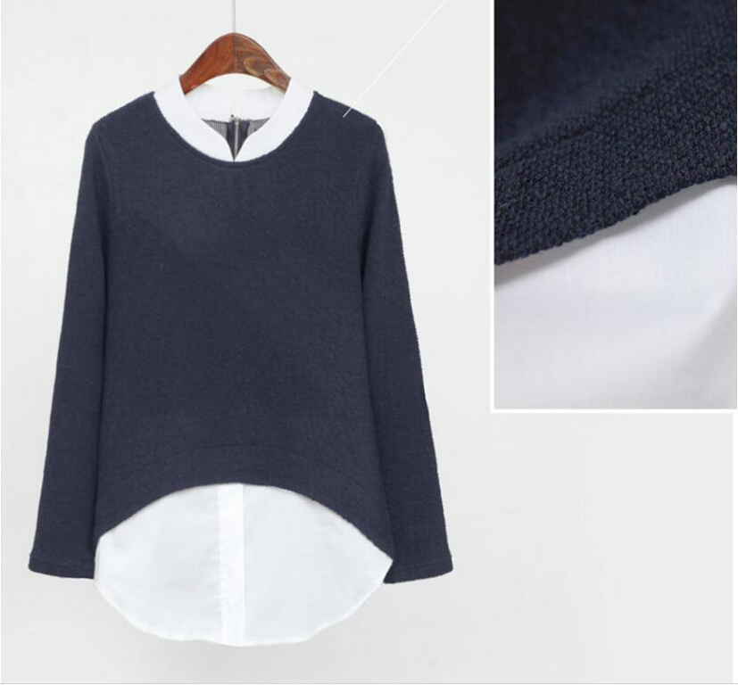 This women's spring sweater features a stylish faux-lined top. It is very elegant and you can choose it in two colours.