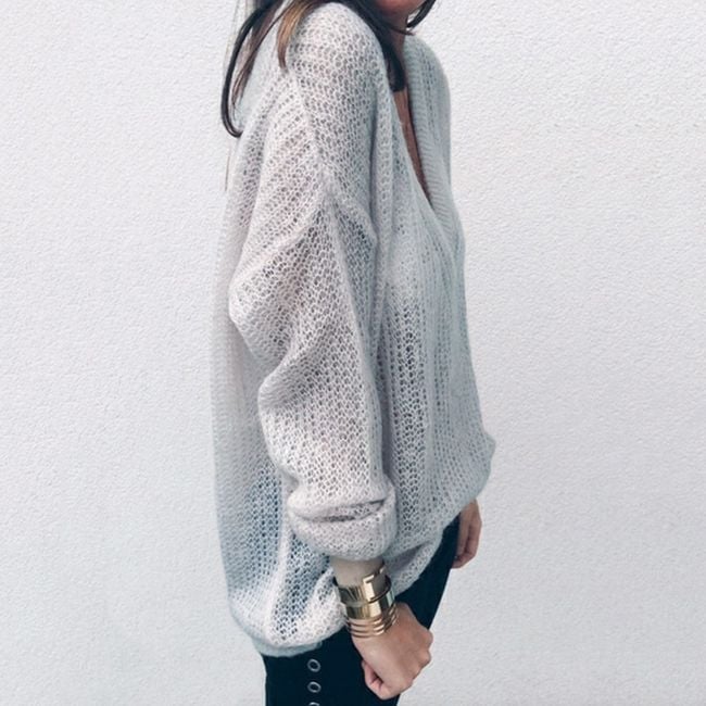 Women's sweater with a deep neckline – 4 colours