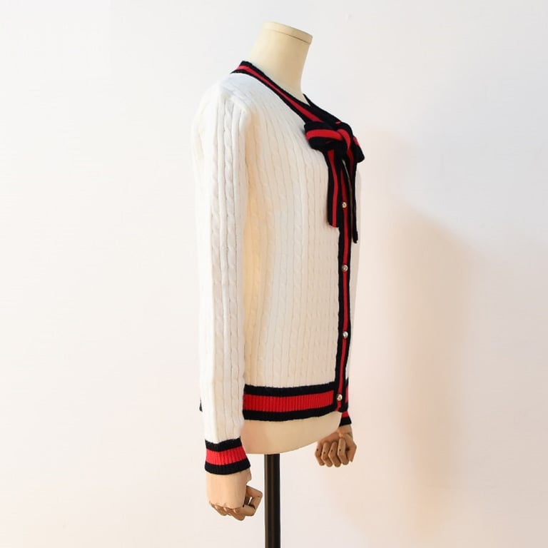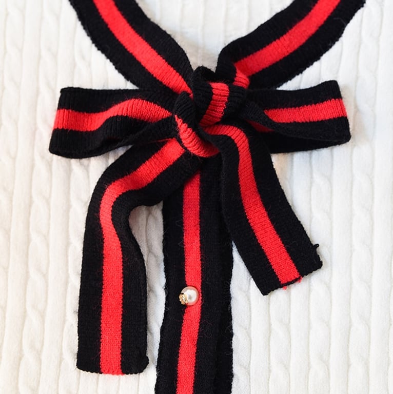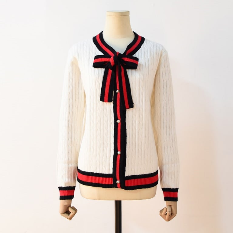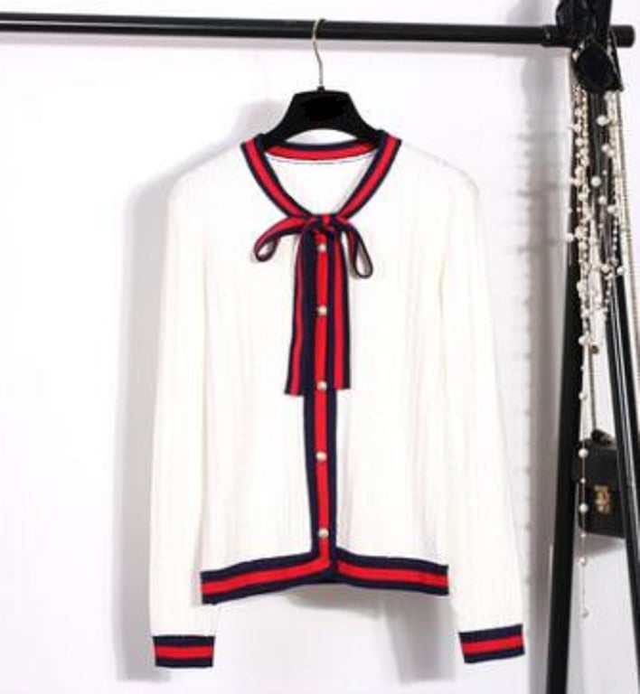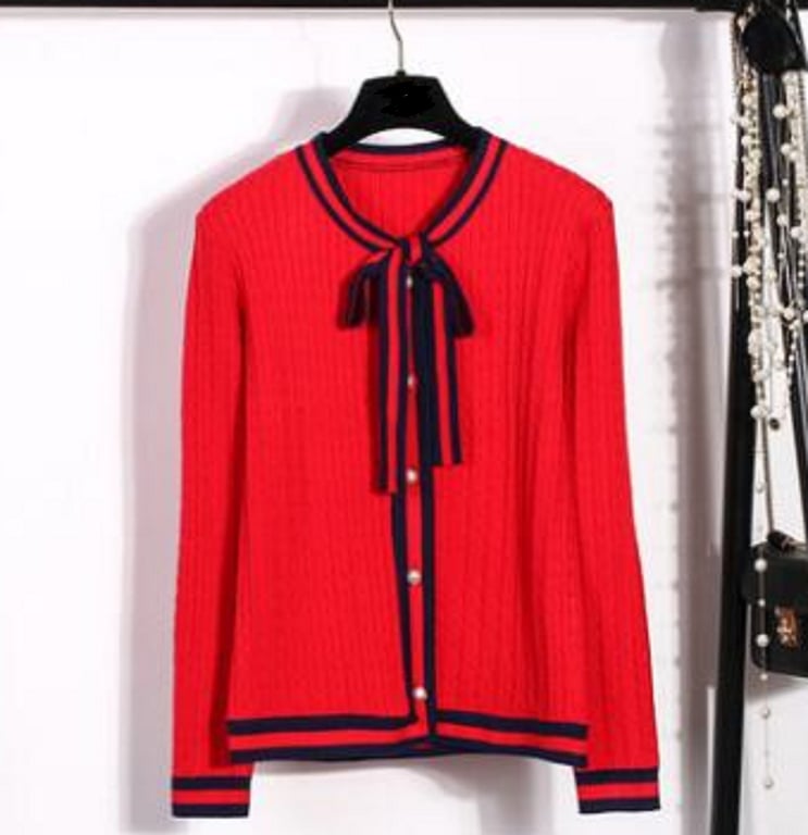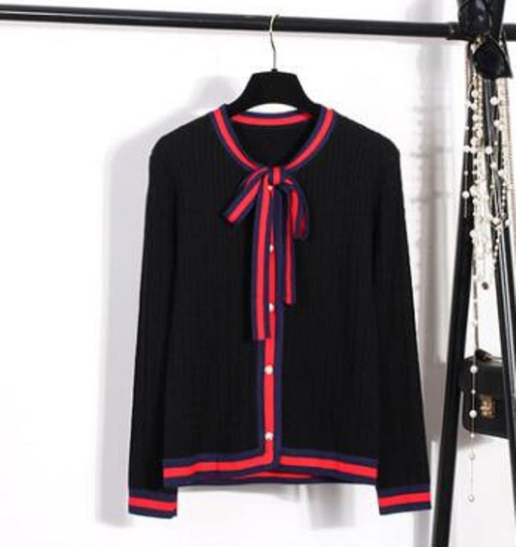 Women's sweater with a tie.