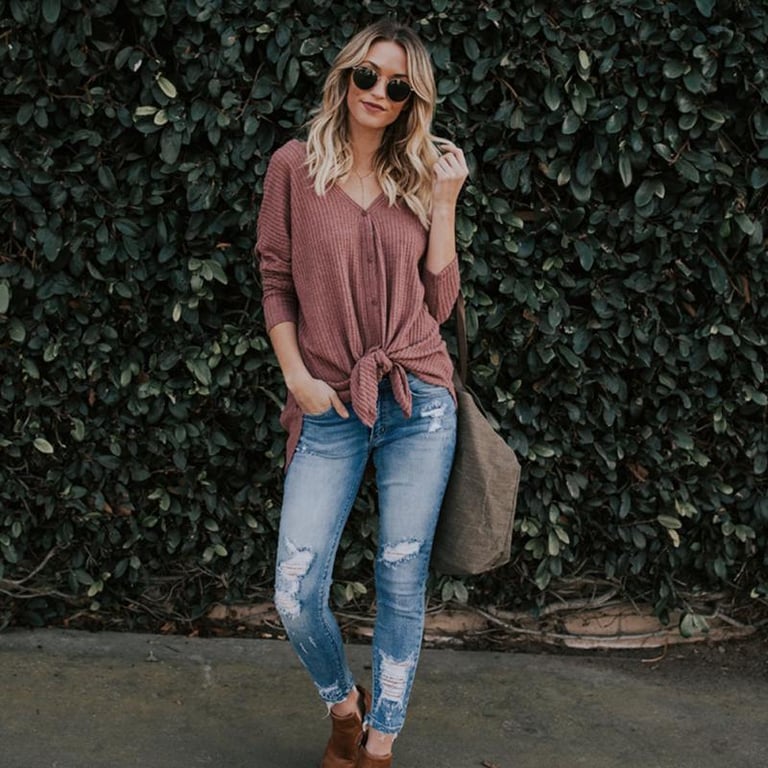 Add a women's sweater to your wardrobe that ties at the waist, beautifully accentuating your feminine curves.