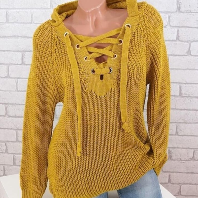 Women's stylish sweater with a tied pattern.