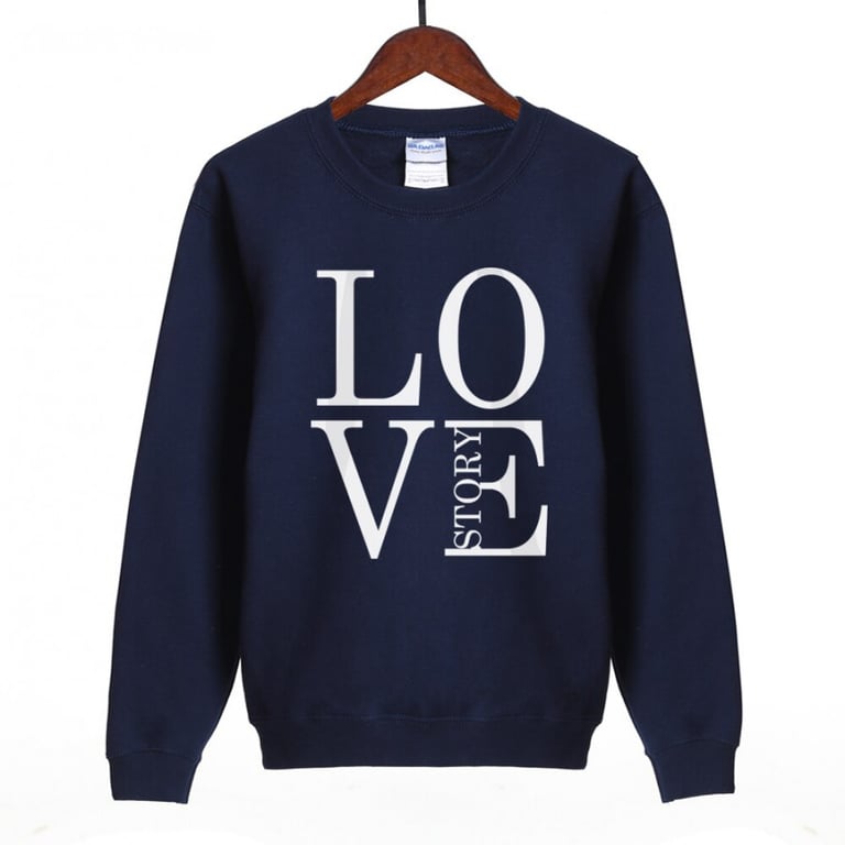 Women's pullover sweatshirt with a round neckline. Loose fit with an elastic waistband. Colourful print with text on the front. Available in multiple colour options.