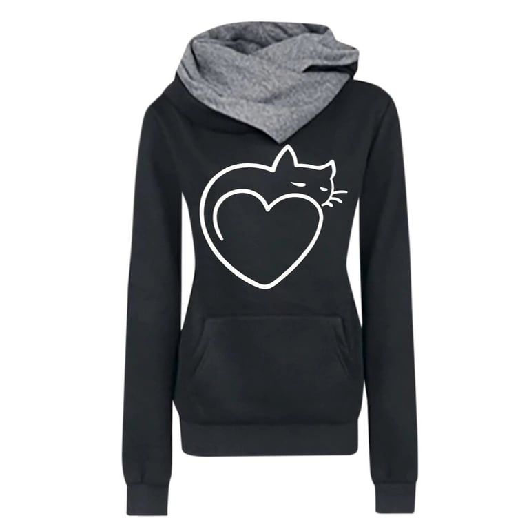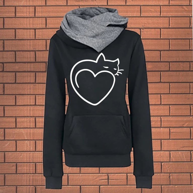 Women's hoodie with a cat and heart