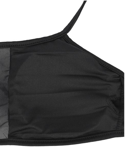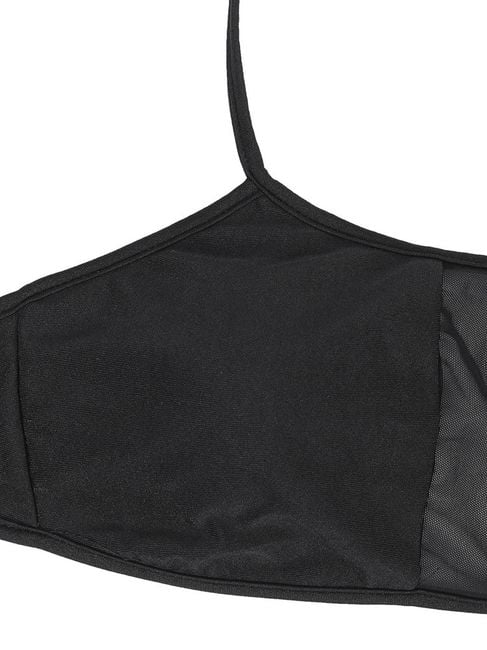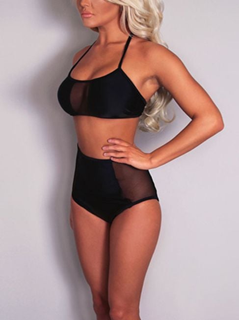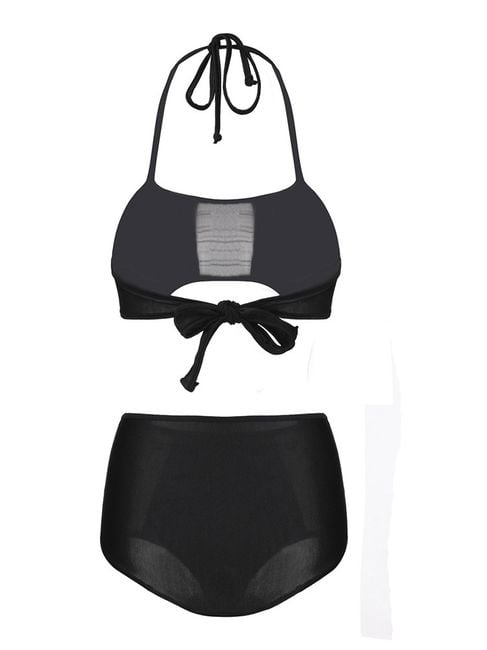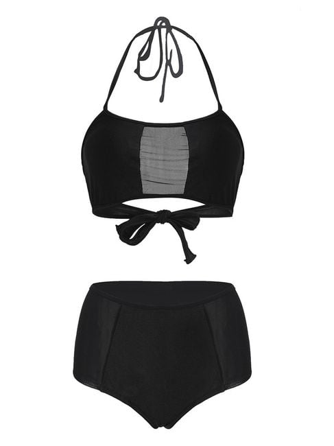 Details There is beauty in simplicity! These swimwear pieces wonderfully shape the body, hide the tummy and enhance the décolleté. The delicate mesh enlivens the sobriety of the black colour. Sizes are for guidance only. The measurements given are for the product, not the body. Features: - Material: Polyester, Spandex, Tulle - Colour: black - Package contents: 1 x swimsuit top, 1 x swimsuit bottom - Size: 2, 3, 4, 5 Size: - 2: size 30, bust circumference: 76 cm, top length: 14 cm, hips: 72 cm, bottom length: 23 cm - 3: size 32, bust circumference: 79 cm, top length: 16 cm, hips: 75 cm, bottom length: 25 cm - 4: size 34, bust circumference: 82 cm, top length: 18 cm, hips: 78 cm, bottom length: 27 cm - 5: size 36, bust circumference: 85 cm, top length: 20 cm, hips: 81 cm, bottom length: 29 cm Please enter the size in the order notes.