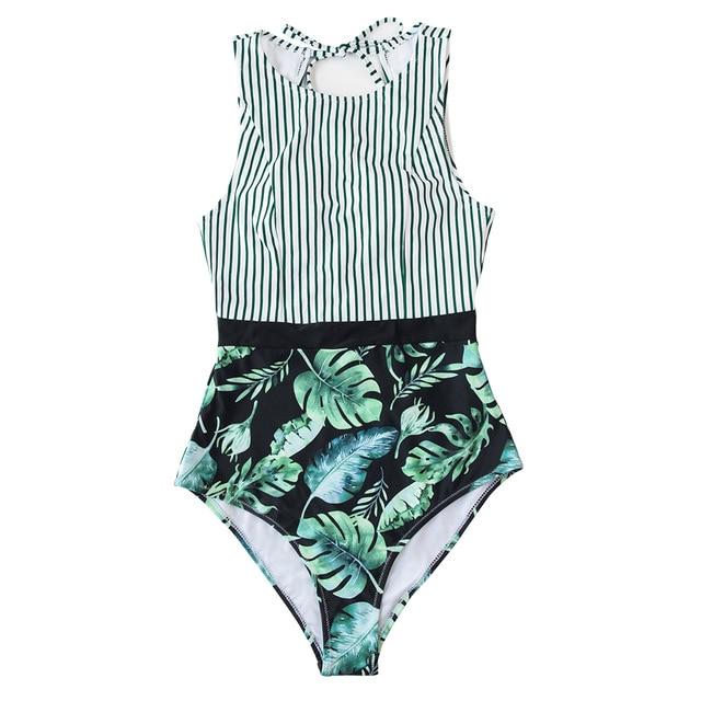 Women's one-piece swimsuit, featuring beautiful summer patterns. Original back design. Made from polyester.