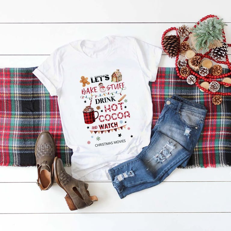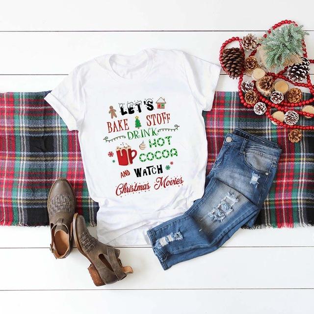 Women's short t-shirt made from synthetic fibre featuring a hot chocolate design. The perfect t-shirt for a cosy Christmas.