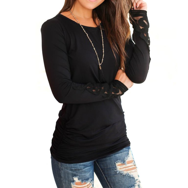 Women's t-shirt with uniquely decorated long sleeves. Available in multiple sizes and free shipping!