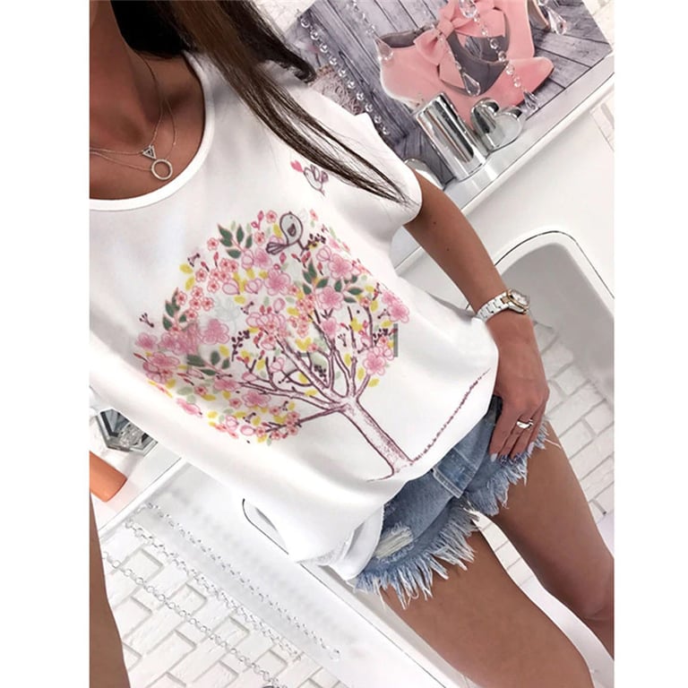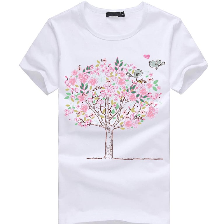 A piece of Romila features a colourful print with a tree and bird motif. Thanks to its looser fit, it can become a very sexy, cute piece.