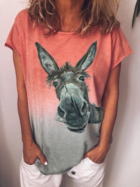 Women's T-shirt with a Cute 3D Donkey Print