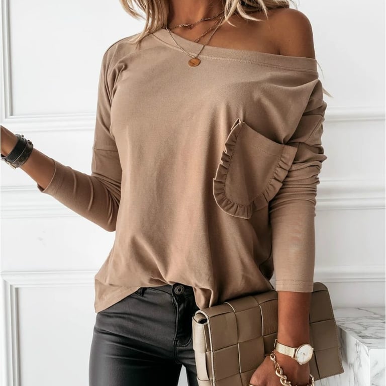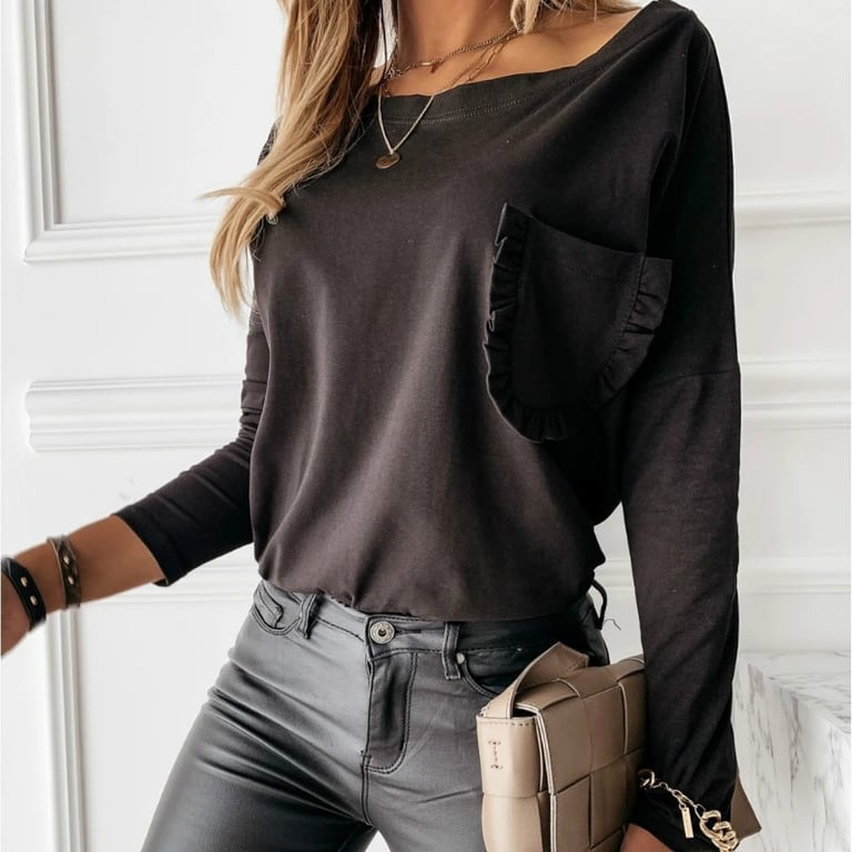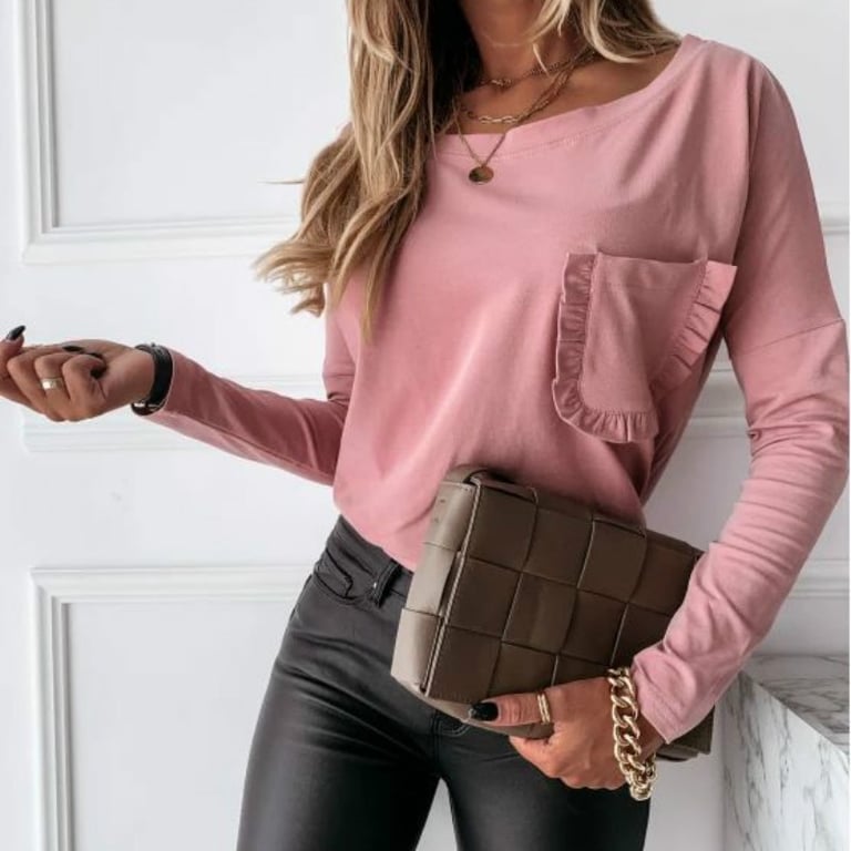 Women's T-shirt with Decorative Pocket and Long Sleeves