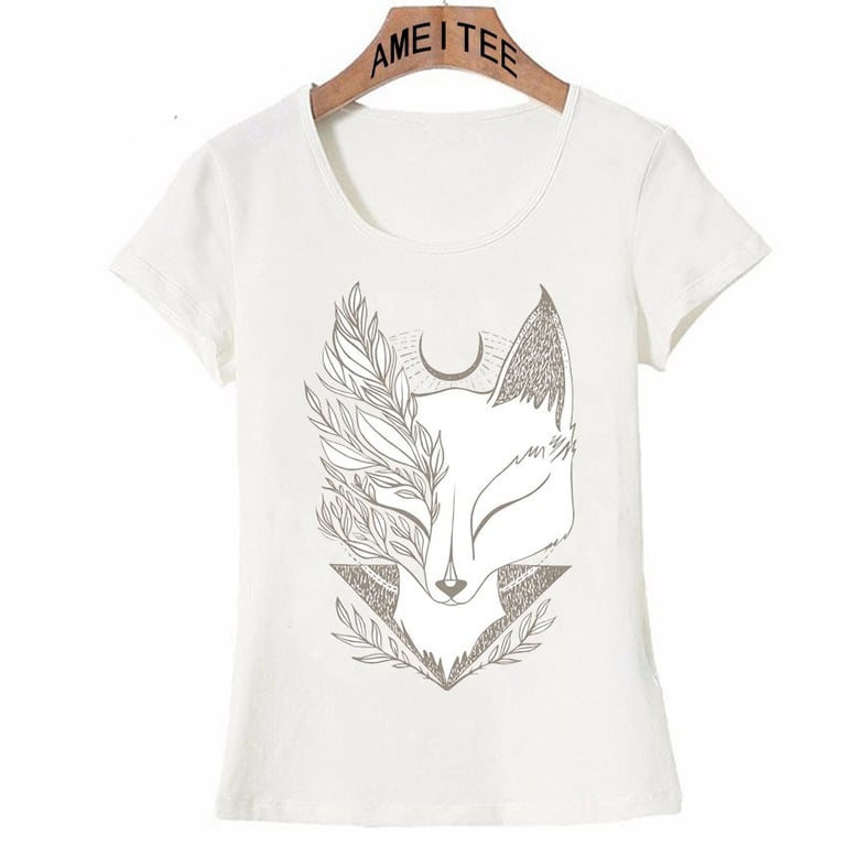 Women's t-shirt with an original fox print. The t-shirt has short sleeves and a round neckline. Comfortable material and a loose, relaxed fit.
