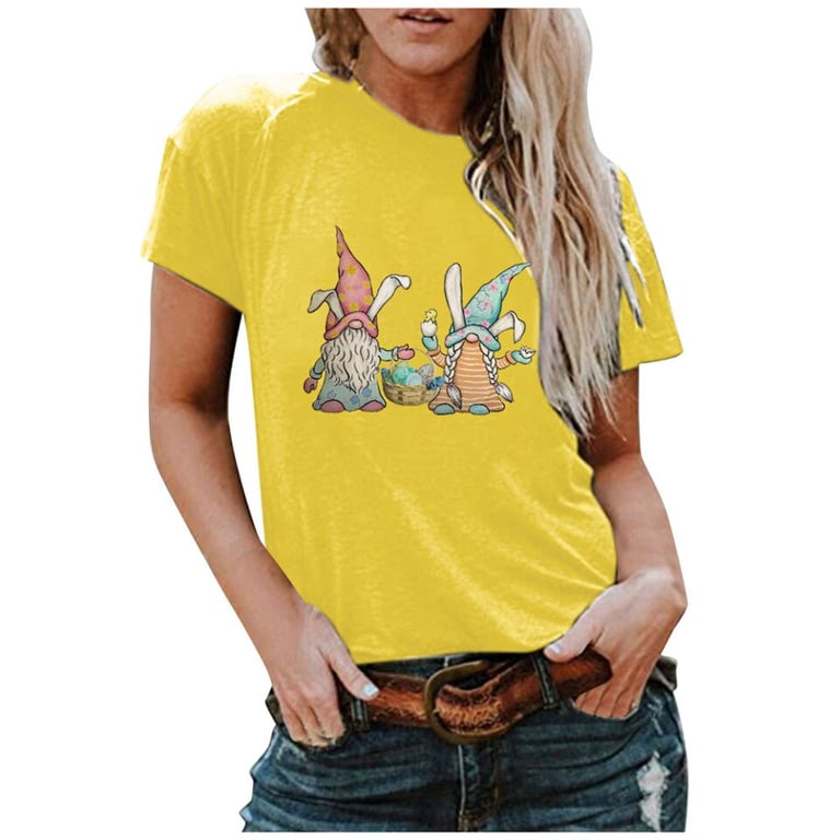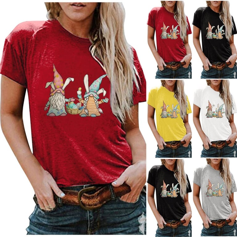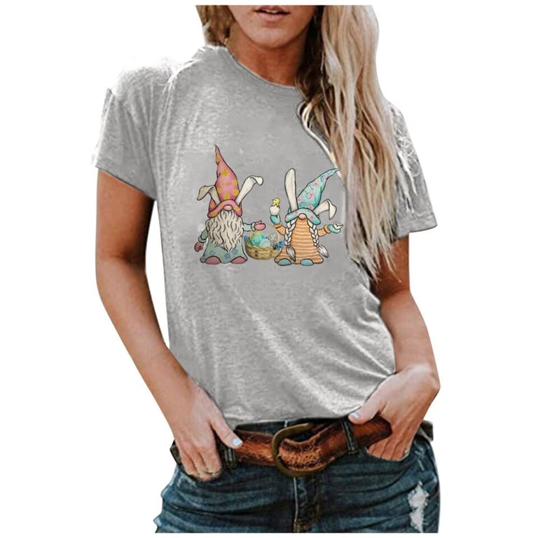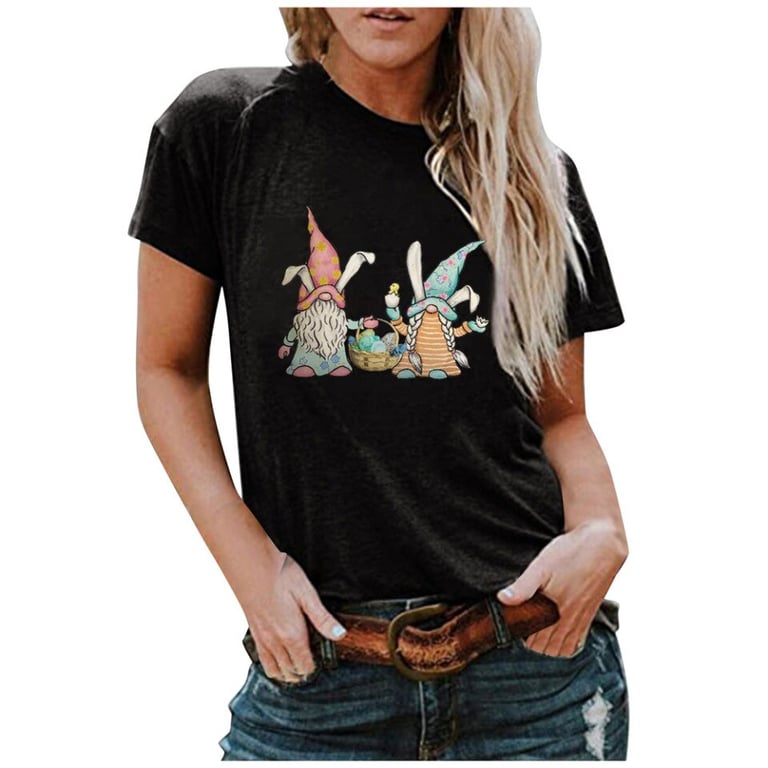 Women's T-shirt with Easter gnome print and short sleeves