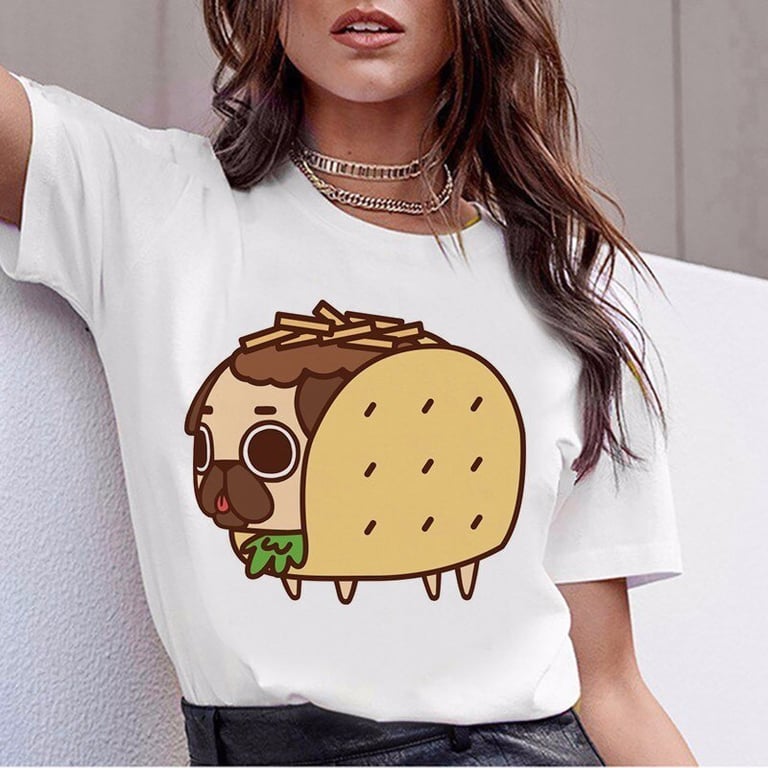 Women's short-sleeved t-shirt with a round neckline. The t-shirt has a loose straight cut. Original print on the front.