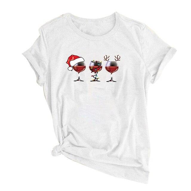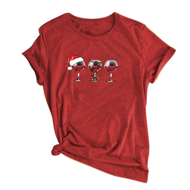 Women's t-shirt with a Christmas wine print. Available in multiple colours.