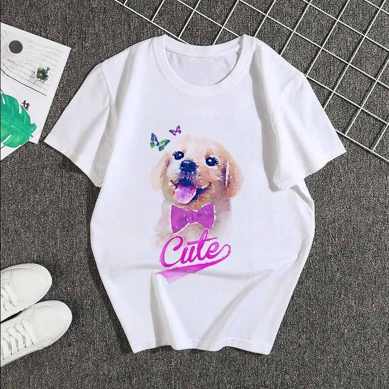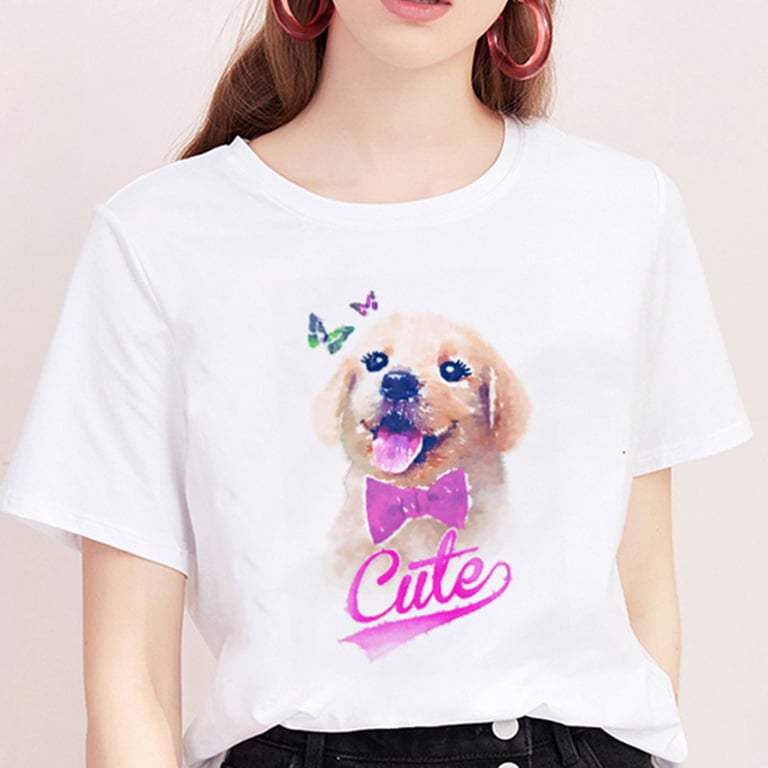Women's short-sleeve t-shirt. Colourful print on the front. Loose fit with a round neckline.