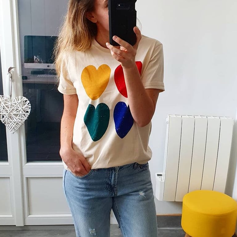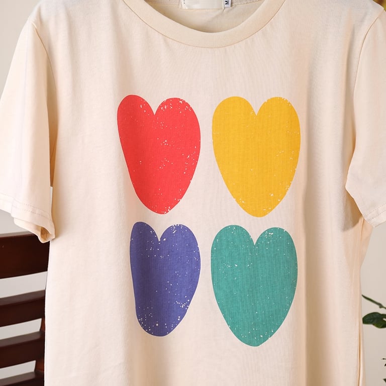 • Tags: Women's T-shirt, short-sleeve T-shirt, heart-patterned T-shirt