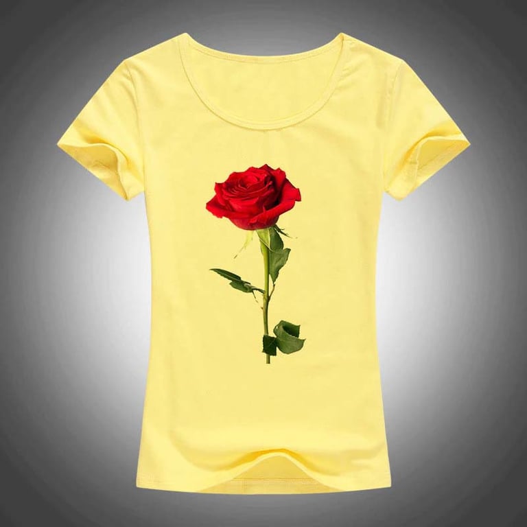 Stylish women's t-shirt with a rose motif, suitable for everyday wear and easy to combine with other pieces.