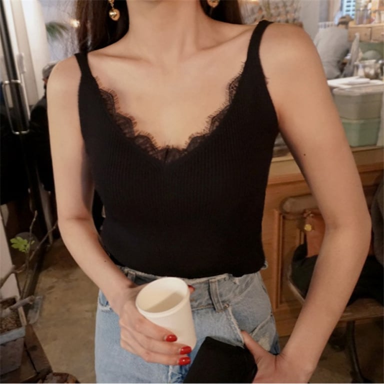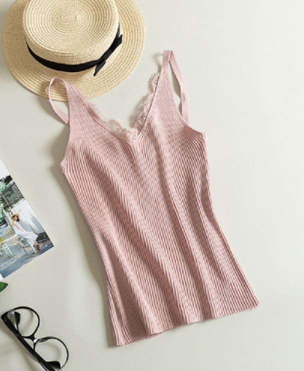 Enjoy the summer days with this beautiful tank top. The tank top features a large neckline with lace, ensuring that every man will notice you.