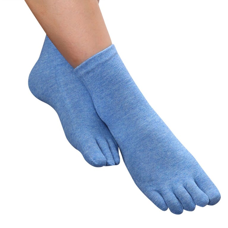 Comfortably colourful socks with practical toes are suitable for everyday use or as an aid for exercising on a mat.