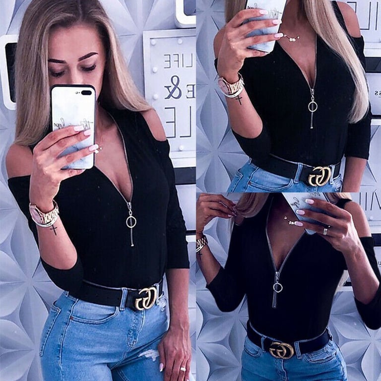 Women's top with zip neckline