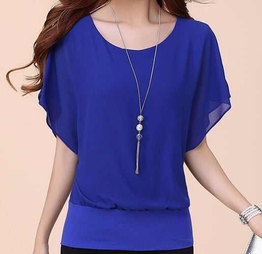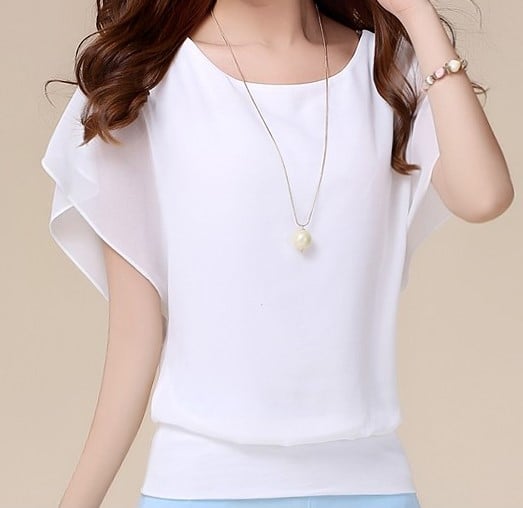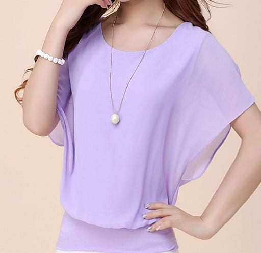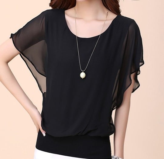 Elegant women's blouse with short sleeves. The sleeves are in a so-called batwing cut and are sheer.
