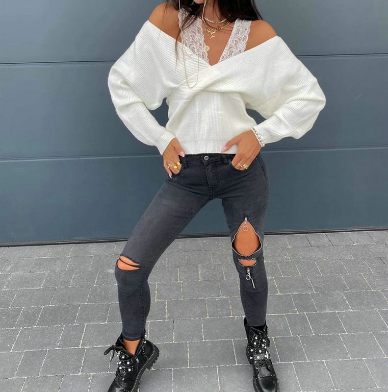 Women's Top with Exposed Shoulders and Lace