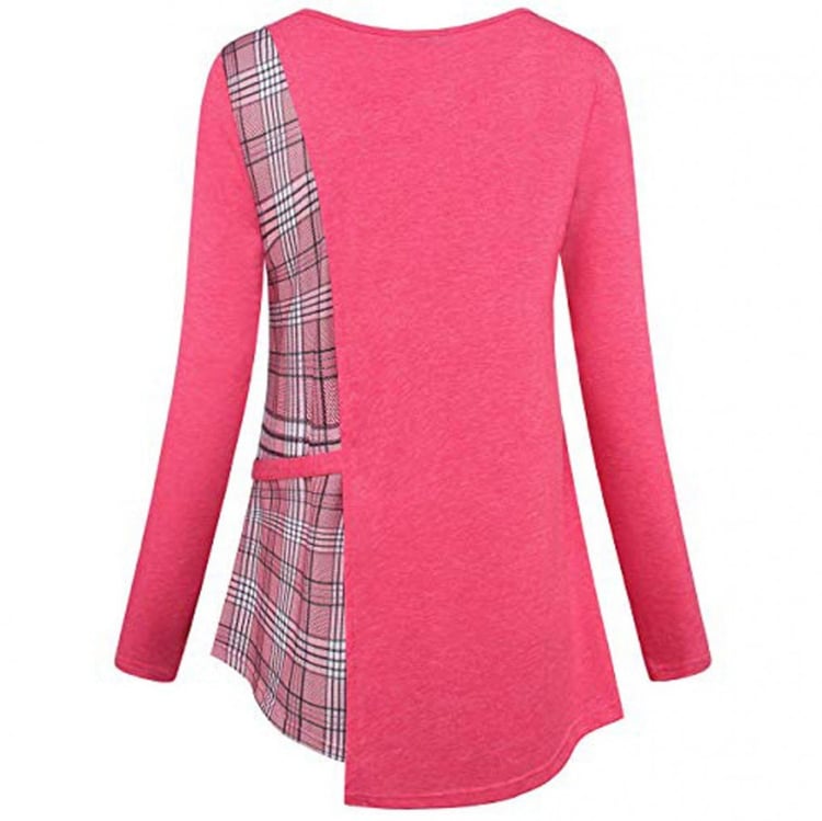 Women's long-sleeve top with a round neckline. Checkered pattern and a bow tie on the side. Plus size available. Available in multiple colour options.