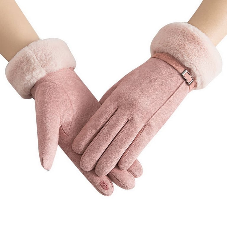 Women's touchscreen gloves with fur – various variants.