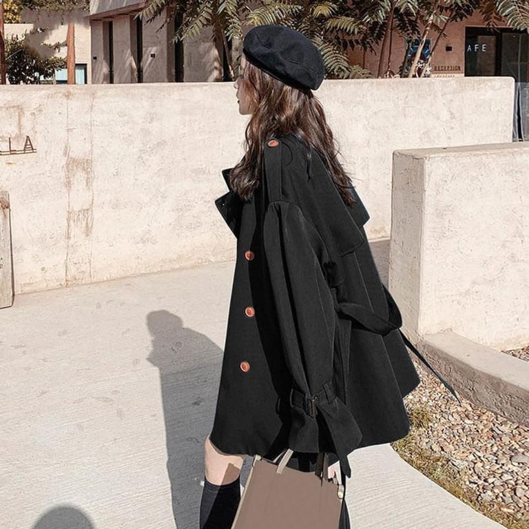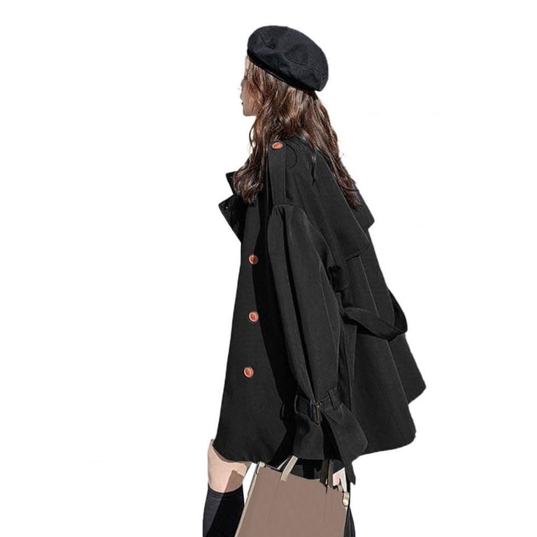 Stylish women's wide coat with buttons. The coat is suitable for cooler weather. It is made from high-quality and comfortable material.