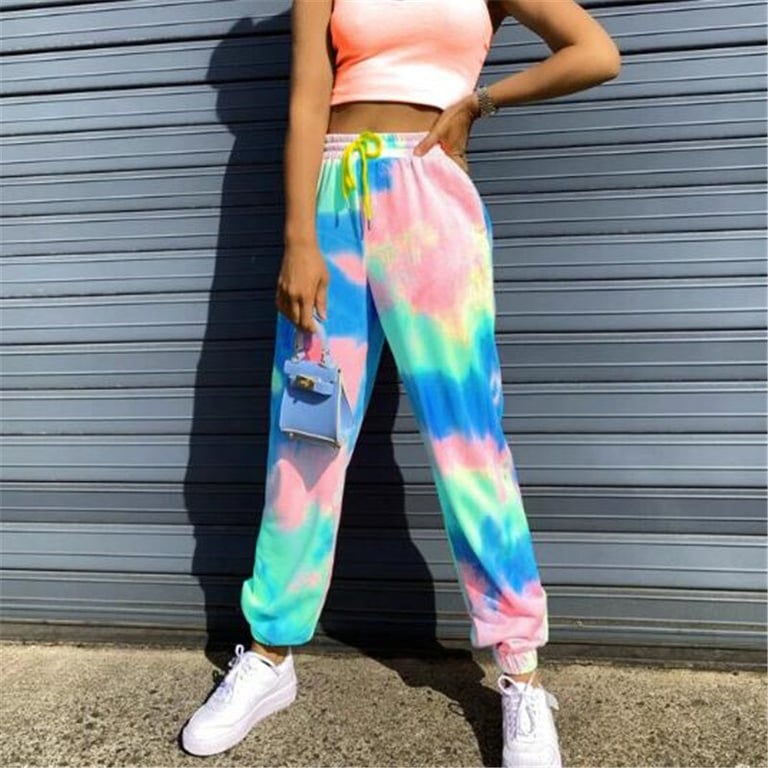 Women's Trendy High-Waisted Joggers with Tie Dye